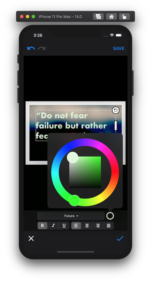 | SelectTextAlignment | Allows user to select text alignment (.left, .center, .right, .justified) |